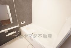 1日の疲れを癒すくつろぎのバスルーム。足を伸ばしてもゆったりと入れるサイズです。お子様と一緒にお風呂に入っても狭くないですね^^