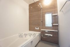 1日の疲れを癒すくつろぎのバスルーム。足を伸ばしてもゆったりと入れるサイズです。お子様と一緒にお風呂に入っても狭くないですね^^