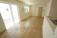 リビング16.25帖。ご家族同士コミュニケーションをとりやすい対面キッチン。お掃除しやすいオールフローリング。全居室南向き^^