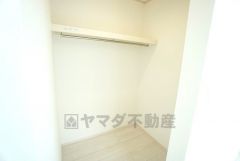 ウォークインクローゼット付き^^ハンガーパイプ下にボックスを置いて、枕棚を活用して、たっぷりと収納できそうです^^