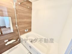 1日の疲れを癒すくつろぎのバスルーム。足を伸ばしてもゆったりと入れるサイズです。お子様と一緒にお風呂に入っても狭くないですね^^