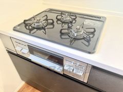 3種類の料理が同時に調理できる、3口ガスコンロ。忙しい夕食の支度時間が短縮できて効率よくお料理が楽しめます。