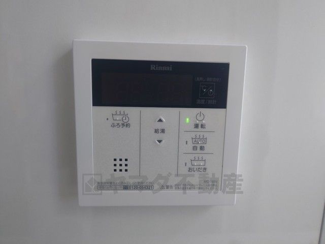 キッチン横からお湯張り、追い炊き、温度調節がボタンで楽々操作できる給湯器リモコンです^^忙しい夕飯の準備の時間帯に重宝しますね。