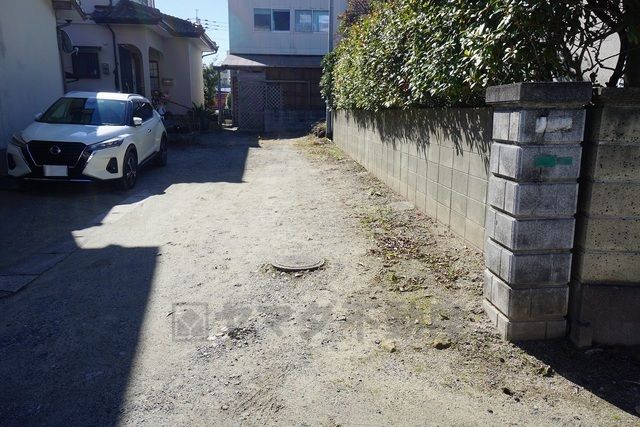▲間口2mの旗竿地となります。駐車は小型車まで。縦列2台可能です。