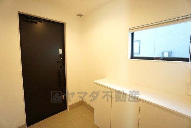 採光も考えられた明るい玄関です。シューズボックス付き。棚の上にはお花やお気に入りのルームフレグランスを飾って、外出も帰宅も楽しくなる玄関にしたいですね^^