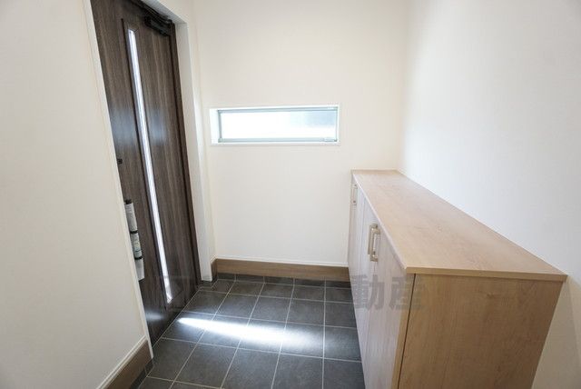 採光も考えられた明るい玄関です。たっぷり収納できるシューズBOX付きです。棚の上にお花や写真を飾っても良いですね。