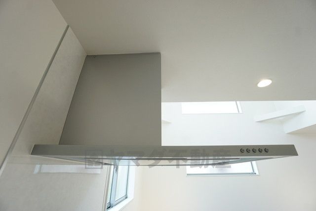 スタイリッシュなレンジフード^^調理中に出る湯気や油分などを効率よく外に逃がしてくれます。