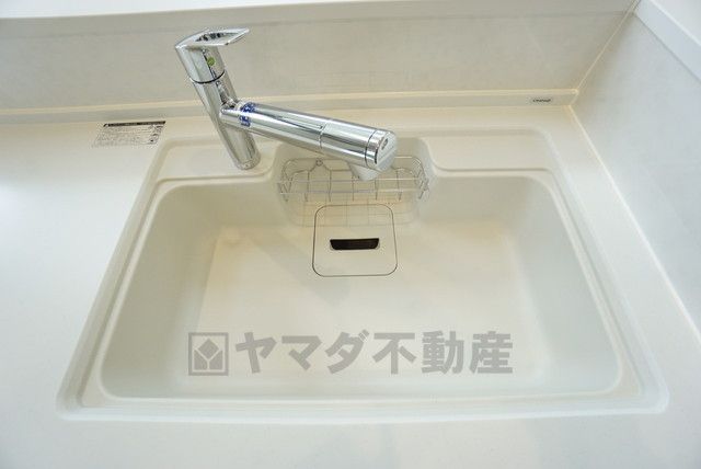 キッチンシンクは洗剤やスポンジを収納出来るラック付き。広さも確保しているので、大きなお鍋も洗いやすいですね。