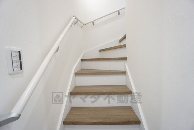小さなお子様やご高齢の方にも配慮された手摺り付き階段です。