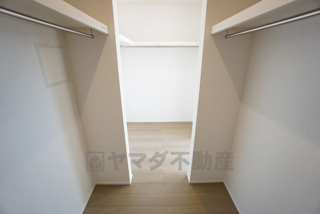 収納量たっぷりのファミリークロークとウォークインクローゼット。ハンガーパイプ付で散らかりがちな洋服類もきれいに整理できます。