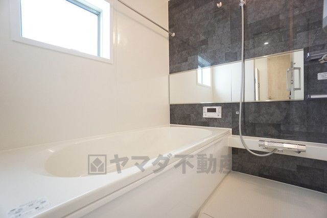 1日の疲れを癒すくつろぎのバスルーム。足を伸ばしてもゆったりと入れるサイズです。お子様と一緒にお風呂に入っても狭くないですね^^