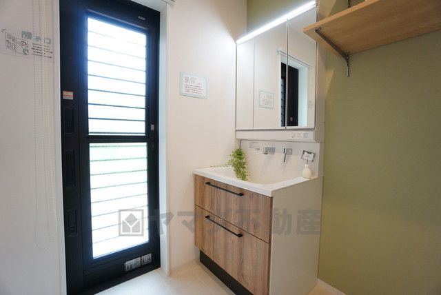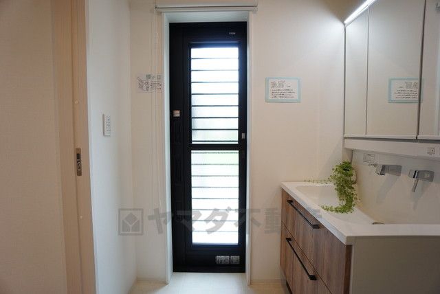 洗面脱衣室には、勝手口が設けられています^^勝手口があることで、通風・採光の確保になります。家庭ごみの仮置きにも重宝しそうですね。