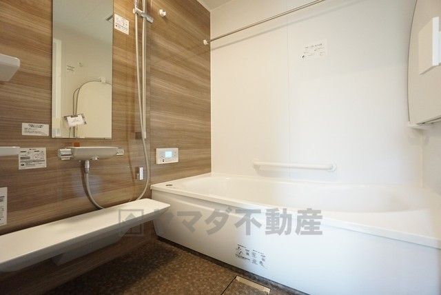 1日の疲れを癒すくつろぎのバスルーム。足を伸ばしてもゆったりと入れるサイズです。お子様と一緒にお風呂に入っても狭くないですね^^