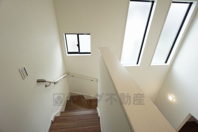 リビング階段は顔を合わせる時間が増えるので、ご家族とのコミュニケーションがとりやすく距離がグッと縮まりそうですね^^吹き抜けと小窓で明るく安全です^^