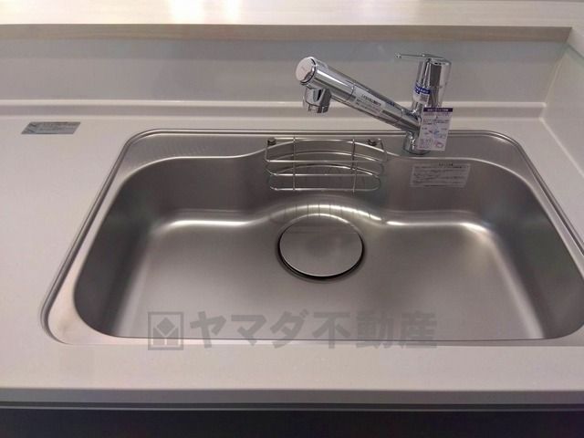 キッチンシンクは洗剤やスポンジを収納出来るラック付き。広さも確保しているので、大きなお鍋も洗いやすいですね。