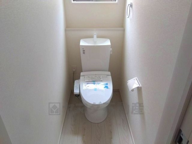 温水洗浄機付トイレです。節水機能もあるので、安心して使えますね。もちろん、1階2階の2ヶ所にトイレがあるので、忙しい朝にもゆとりができますね。