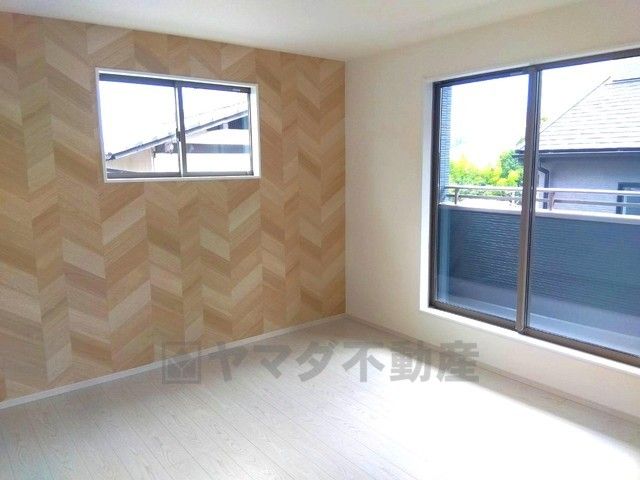 デザインクロスが2階洋室の雰囲気を上品に仕上げています。いつもと違う雰囲気のお部屋をお楽しみください。