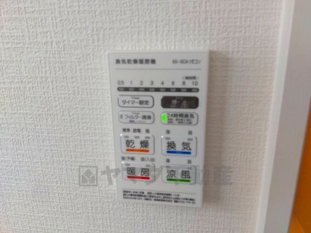 雨の日の洗濯も安心できる浴室暖房乾燥機付き浴室。リモコンで操作もボタン1つで簡単。 浴室暖房乾燥機には、暖房、乾燥、涼風、換気の4つの機能が付いています。タイマー付きです。
