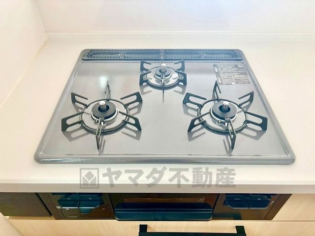 複数の調理を一度に行うことができる3口コンロ。効率よくお料理が出来ます。毎日のお料理も楽しくなりますね^^
