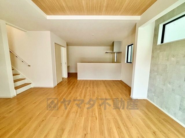 大きな窓のあるリビングは、陽光あふれる明るい空間です。居心地良く、ご家族皆がゆったり寛げる憩いの空間となりそうです。