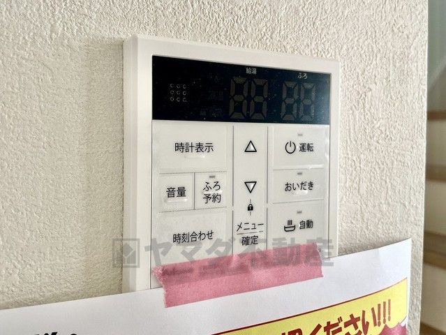 キッチン横からお湯張り、追い炊き、足し湯がボタン一つで楽々操作できる給湯機リモコンです^^忙しい夕飯の準備の時間帯に重宝しますね。