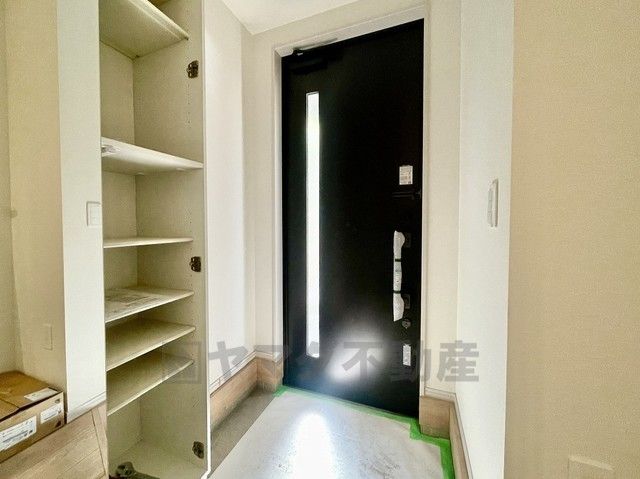 玄関扉から光の差し込む明るい玄関です。広々としたシューズインクローゼットを完備。家族全員の靴がきれいに収納できます^^
