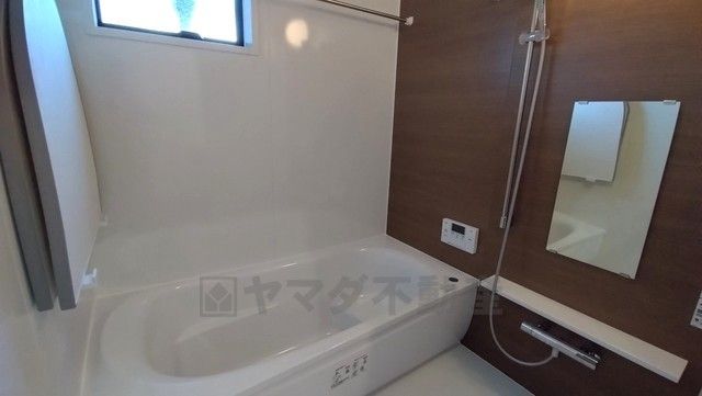 1日の疲れを癒すくつろぎのバスルーム。足を伸ばしてもゆったりと入れるサイズです。お子様と一緒にお風呂に入っても狭くないですね^^