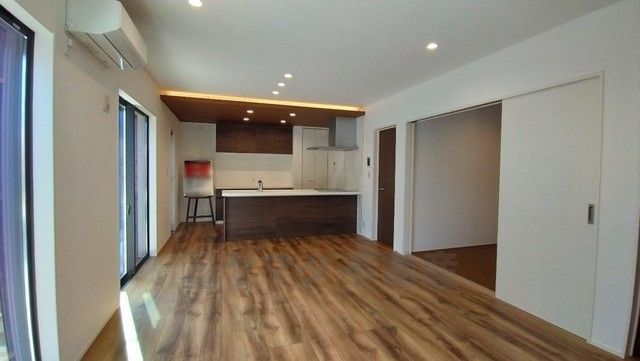 リビングは広々とした設計で、家族が集い、寛ぐ暮らしの空間を演出しています。思い思いの時間を過ごしたり、家族みんなで食事をしたり、素敵な団らんの場になりますね。