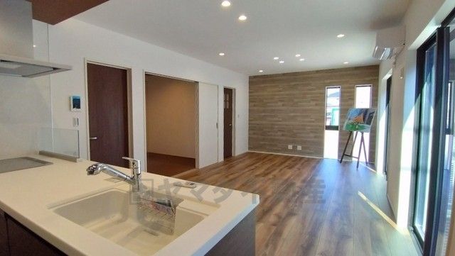 大きな窓のあるリビングは、陽光あふれる明るい空間です。居心地良く、ご家族皆がゆったり寛げる憩いの空間となりそうです。