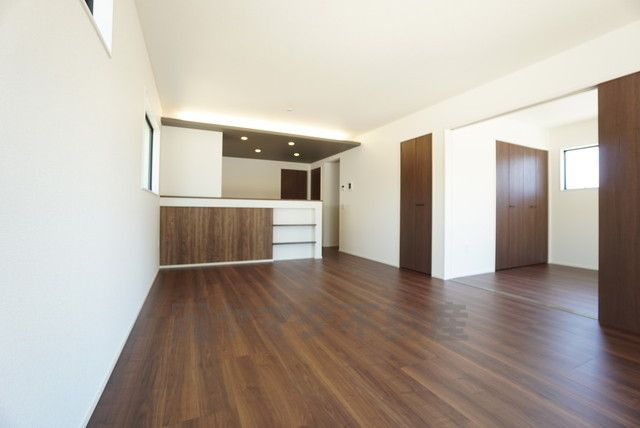大きな掃き出し窓のあるリビングは、陽光あふれる明るい空間です。ゆったりと寛げる憩いの場となりそうです。