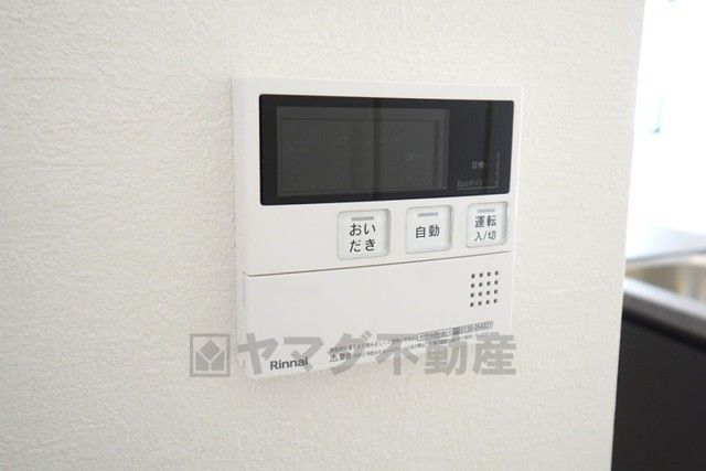 キッチン横からお湯張り、追い炊き、足し湯がボタン一つで楽々操作できる給湯機リモコンです^^忙しい夕飯の準備の時間帯に重宝しますね。
