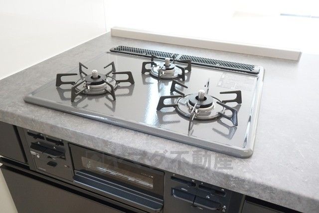 3種類の料理が同時に調理できる、3口ガスコンロ。忙しい夕食の支度時間が短縮できて効率よくお料理が楽しめます。