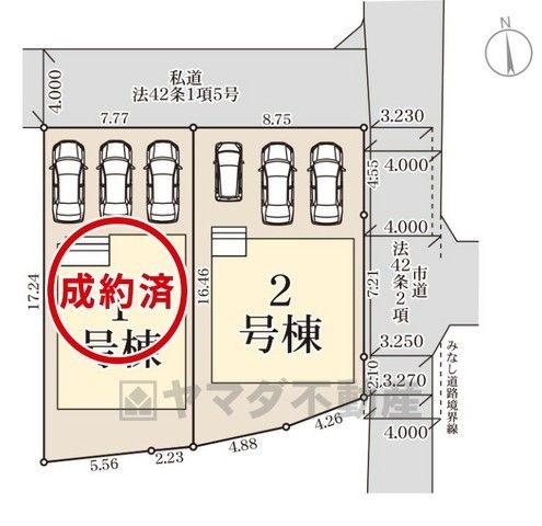 2号棟。1号棟成約済。カースペース3台分あり^^