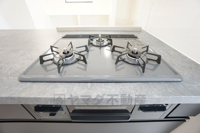 3種類の料理が同時に調理できる、3口ガスコンロ。忙しい夕食の支度時間が短縮できて効率よくお料理が楽しめます。