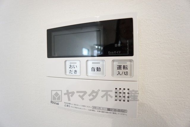 キッチン横からお湯張り、追い炊き、足し湯がボタン一つで楽々操作できる給湯機リモコンです^^忙しい夕飯の準備の時間帯に重宝しますね。