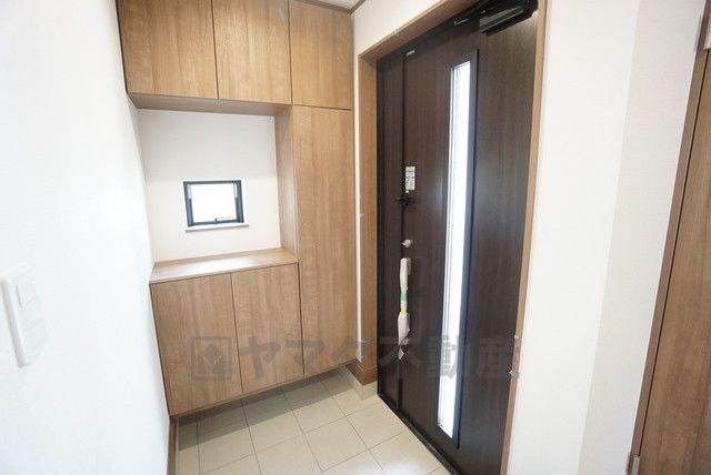 採光も考えられた明るい玄関です。たっぷり収納できるシューズボックス付きなので、家族全員の靴がきれいに整頓できます。