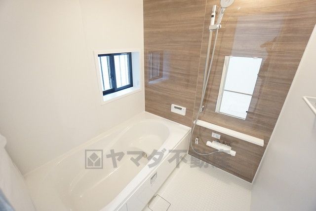 1日の疲れを癒すくつろぎのバスルーム。足を伸ばしてもゆったりと入れるサイズです。お子様と一緒にお風呂に入っても狭くないですね^^