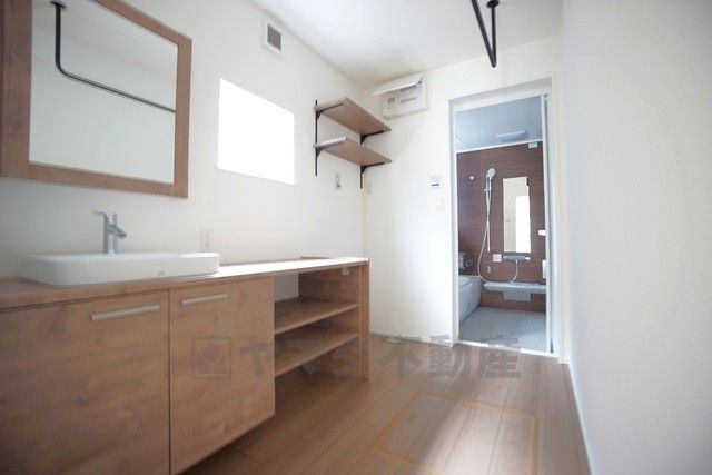洗面室には室内物干し付き^^雨の日や花粉の季節の洗濯も安心です^^洗濯機から取り出してすぐに干せるのも嬉しいですね^^