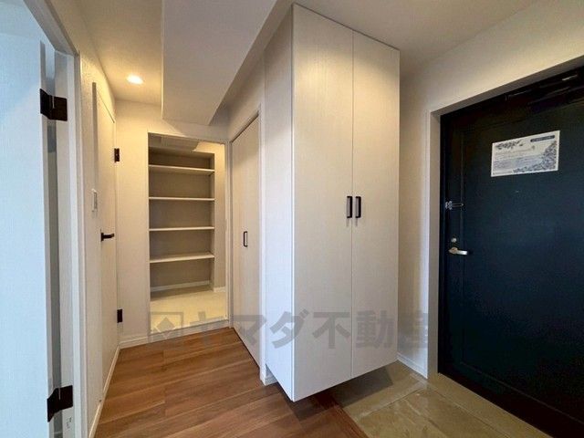 玄関は大容量のシューズボックス付きです。高い収納力で玄関まわりをすっきり保てます。急な来客があっても気持ちよく対応できますね。