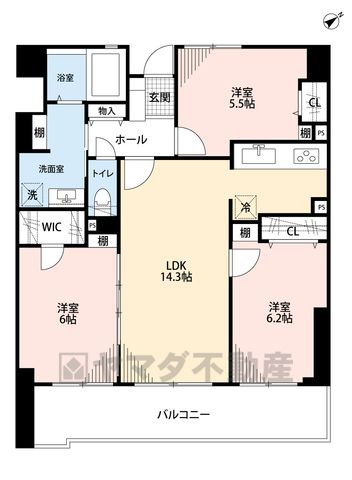 LDK14.3畳、洋6.2畳、洋6畳、洋5.5畳 |