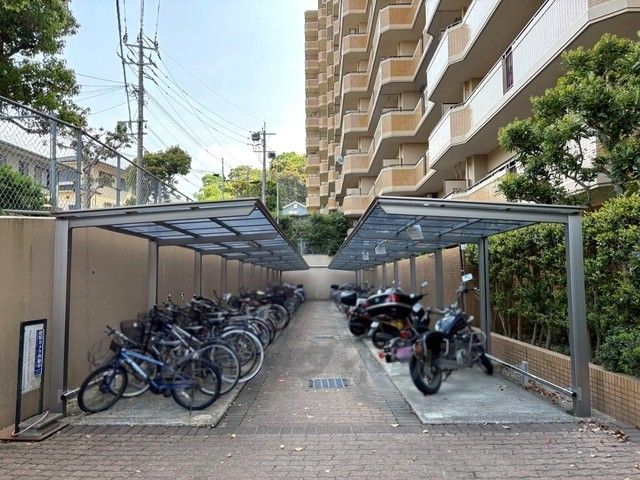 駐輪場には屋根があるので雨や雪から自転車を守ります。お子様を乗せたり降ろしたりする際も慌てず安心です。