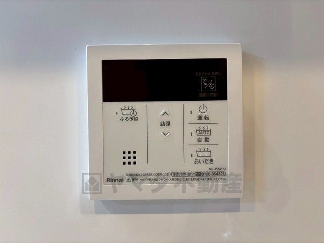 キッチン横から追い炊き、温度調節など楽々操作できる給湯器リモコンです^^忙しい夕飯の準備の時間帯に重宝しますね。