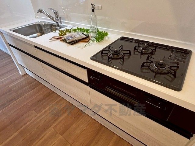 3口コンロなので、効率よく調理ができます。毎日のお料理が楽しくなりますね。