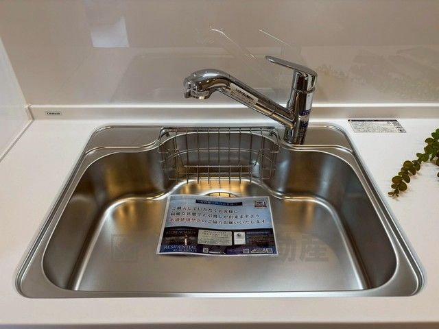 キッチンシンクは洗剤やスポンジを収納出来るラック付き。広さも確保しているので、大きなお鍋も洗いやすいですね。