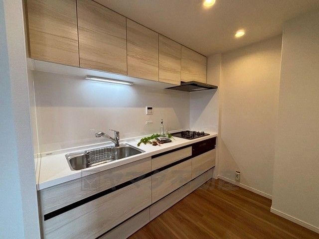 広々としたキッチン作業台。お子様と一緒に調理をするのもゆとりがあります。3口コンロなので、効率よく調理ができますね。