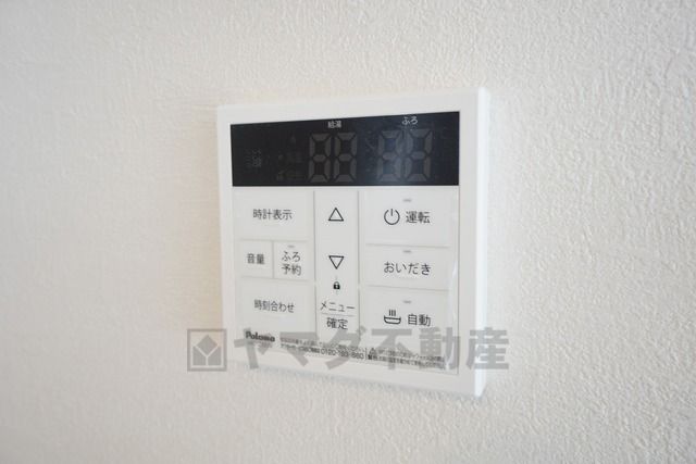 キッチン横からお湯張り、追い炊き、足し湯がボタン一つで楽々操作できる給湯機リモコンです^^忙しい夕飯の準備の時間帯に重宝しますね。