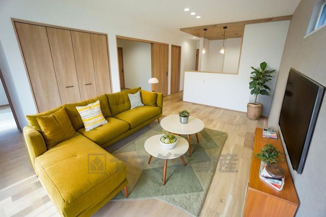 大きな掃き出し窓のあるリビングは、陽光あふれる明るい空間です。ゆったりと寛げる憩いの場となりそうです。