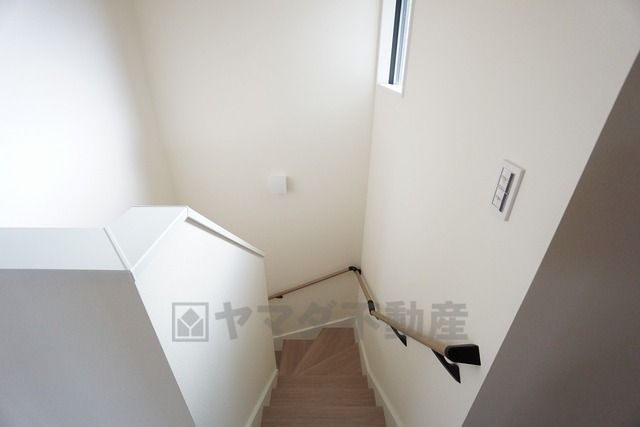 日中でも暗くなりがちな階段には、小窓を配置し採光も考えられたつくり^^手摺付きなので安全に上り下りできますね^^