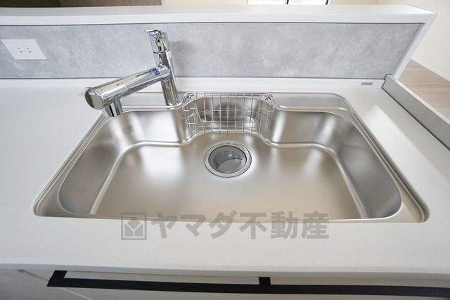 大きなお鍋も楽々洗える幅の広いシンクです^^ステンレスシンクなので簡単にお掃除できますよ。洗剤やスポンジもすっきりできる収納付き。