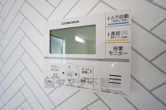 キッチン横からお湯張り、追い炊き、足し湯がボタン一つで楽々操作できる給湯機リモコンです^^忙しい夕飯の準備の時間帯に重宝しますね。
